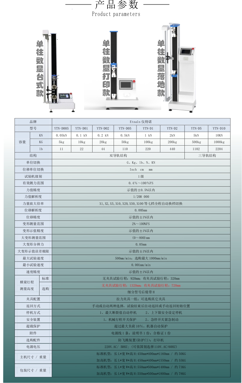 YTN-D系列單柱萬能材料試驗機/拉力試驗機