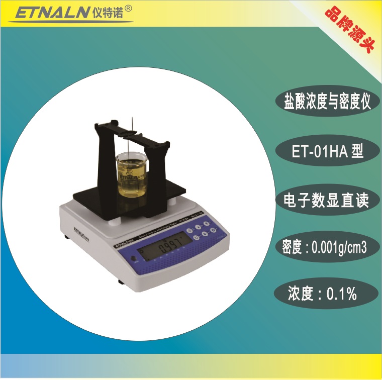 鹽酸濃度與密度測(cè)試儀ET-01HA是根據(jù)阿基米德原理密度法,自動(dòng)顯示鹽酸濃度值HCL%、波美度Be、密度SG;具有測(cè)量精準(zhǔn)、操作快速簡(jiǎn)便、可靠性高等主要特點(diǎn); 同時(shí)可轉(zhuǎn)換標(biāo)準(zhǔn)溫度20℃狀態(tài)下鹽酸濃度值。