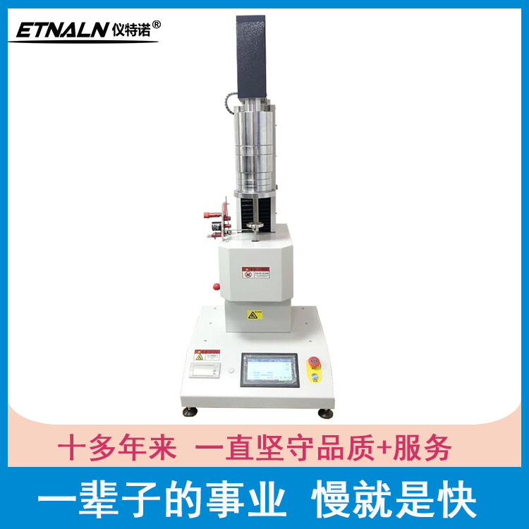 10、高精度觸摸屏控制器,7寸觸摸屏,可以存儲并列印最近測試條件及數(shù)據(jù),測試打印菜單的設(shè)定包括測試時間(系統(tǒng)默認(rèn))、材料名稱、測試條件(溫度、砝碼重量、切料時間間隔)、測試結(jié)果數(shù)據(jù)。